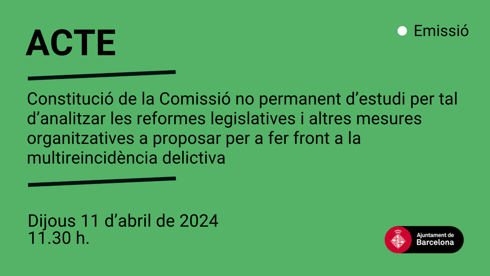Cinquena sessió de la Comissió no permanent d’estudi per tal d’analitzar les reformes legislatives i altres mesures organitzatives a proposar per a fer front a la multireincidència delictiva