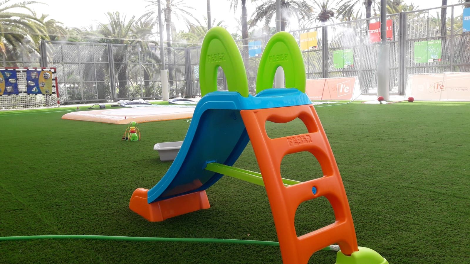 Està ubicat a l’entorn de les pistes poliesportives municipals del parc de Joan Miró, i a banda dels jocs aquàtics, l’espai estarà dinamitzat per personal especialitzat per generar dinàmiques participatives.