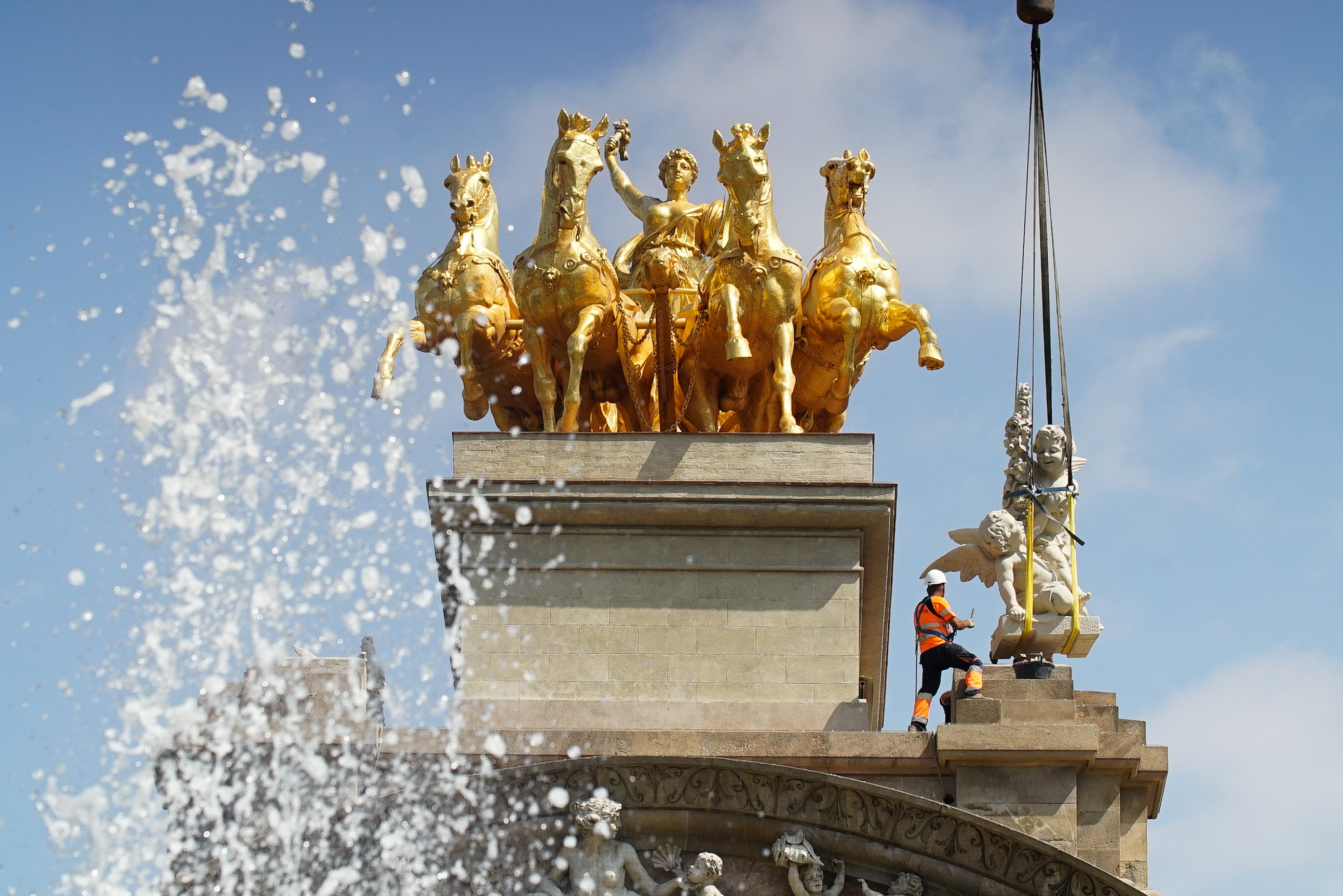 L’Ajuntament de Barcelona ha iniciat aquest dimarts les tasques per tornar a ubicar al seu lloc quatre parelles d’angelots (putti) de la cascada ornamental del parc de la Ciutadella. D’aquesta manera, el consistori, a través del Departament de Serveis d’Arquitectura Urbana i Patrimoni, culmina el procés de recuperació d’aquestes escultures, que simulen la figura de nens nus i alats que juguen festius amb garlandes de flors.