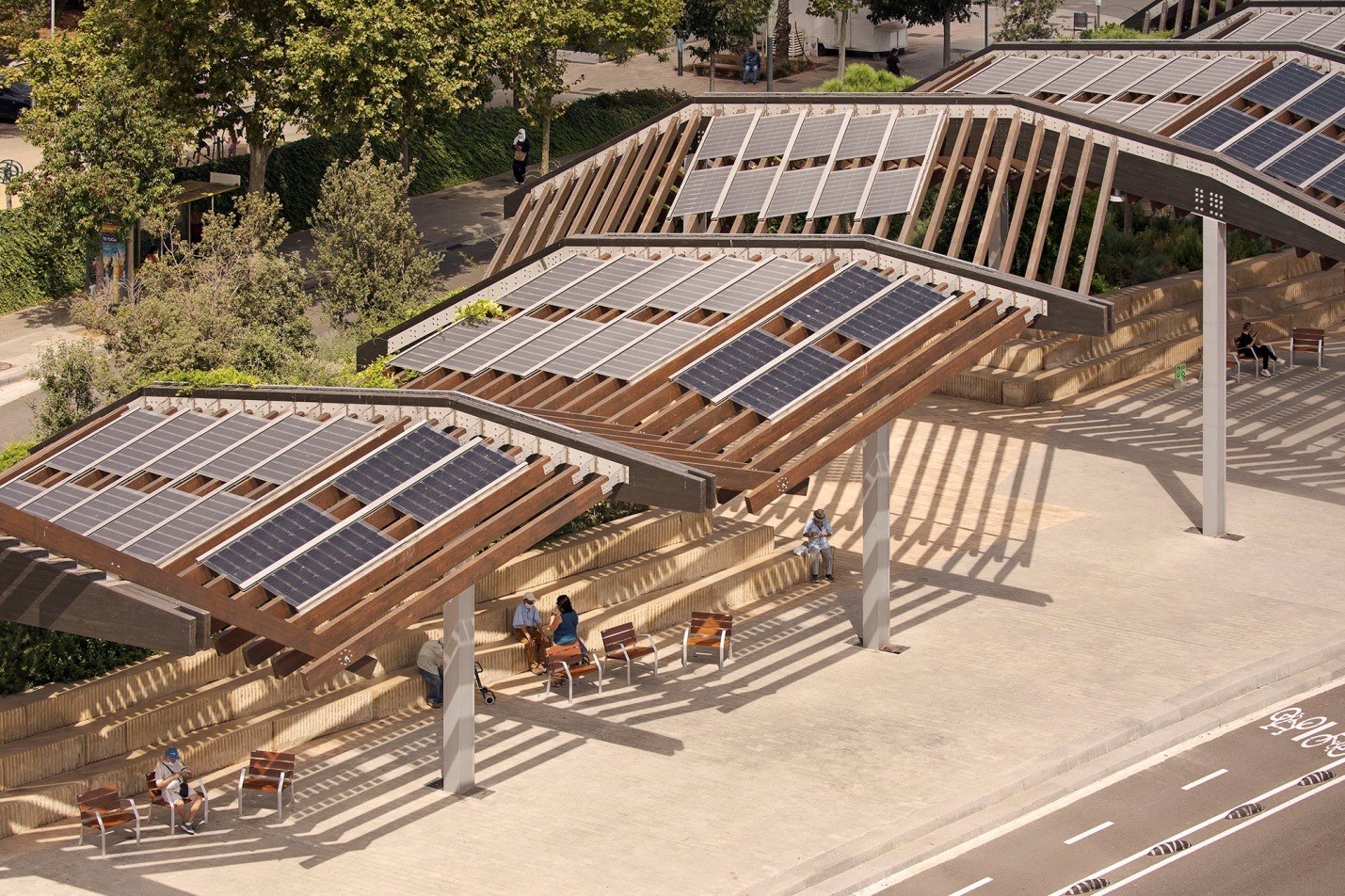 La plaça d’Anna Lizaran estrena ombres i dues grans pèrgoles fotovoltaiques