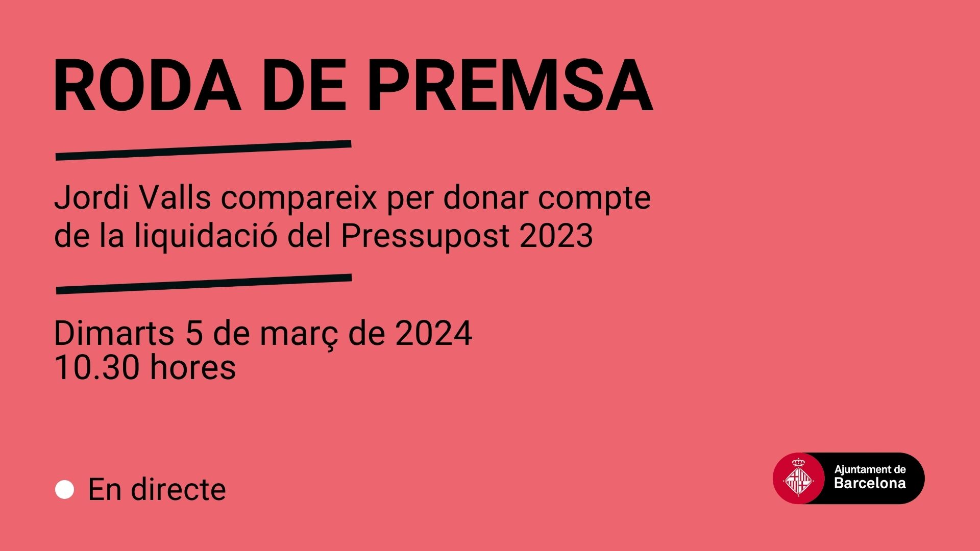 Dimarts 5 de març, a les 10.30 hores (Sala Lluís Companys, Ajuntament de Barcelona)