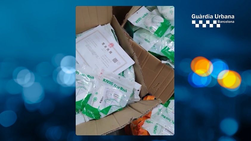 Agents de la Unitat Territorial de l’Eixample de la Guàrdia Urbana de Barcelona van decomissar 42.000 mascaretes no homologades, 809 tests antígens no homologats i presumptament falsificats/modificats i 5,5 quilos de marihuana en un local del barri del Fort Pienc.