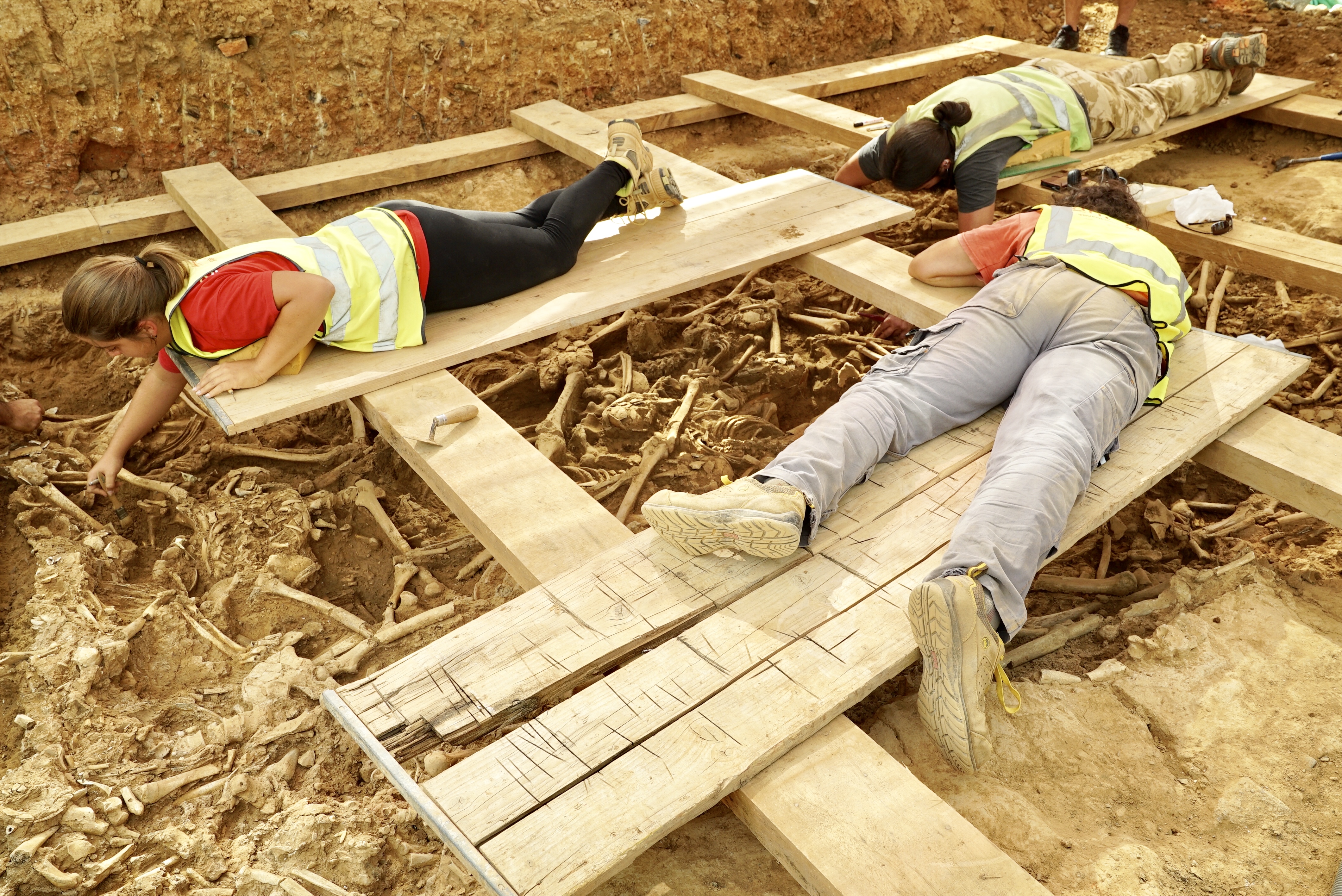 El responsable d’intervencions arqueològiques del Servei d’Arqueologia de Barcelona, Josep Pujades, ha participat avui en una visita a les fosses d’enterraments múltiples aparegudes a les obres de l’estació de la Sagrera. Segons ha explicat, la campanya arqueològica planificada ha permès trobar i documentar 68 fosses d’enterraments amb un total de 358 individus localitzats fins ara. Segons les primeres hipòtesis de treball es tractaria de soldats de les tropes que estaven assetjant la ciutat durant la Guerra dels Segadors, a mitjans del segle XVII, que haurien mort per la pesta que hi havia a Catalunya.