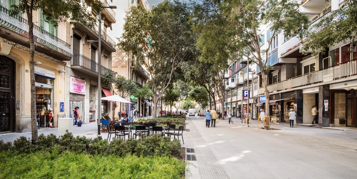 La nova etapa permetrà estendre la transformació de Sant Antoni a tot l’Eixample, àmbit prioritari d’actuació ja que té un impacte potencial molt alt cap a la resta de ciutat degut a una densitat de població i nivells de trànsit i contaminació elevats i a la necessitat de més espais verds i confortables. | Press kit (PDF)