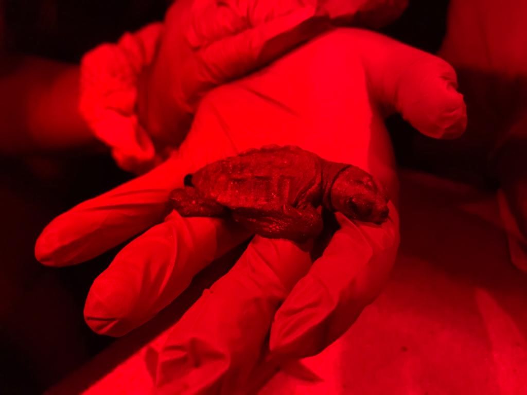 Aquesta nit han nascut altres 10 cries, que s’han deixat anar al mar, i s’ha obert el niu, on encara quedaven 5 ous, per trobar 4 no viables i una tortugueta viva a 20 centímetres de profunditat, que s’ha portat a la Fundació CRAM