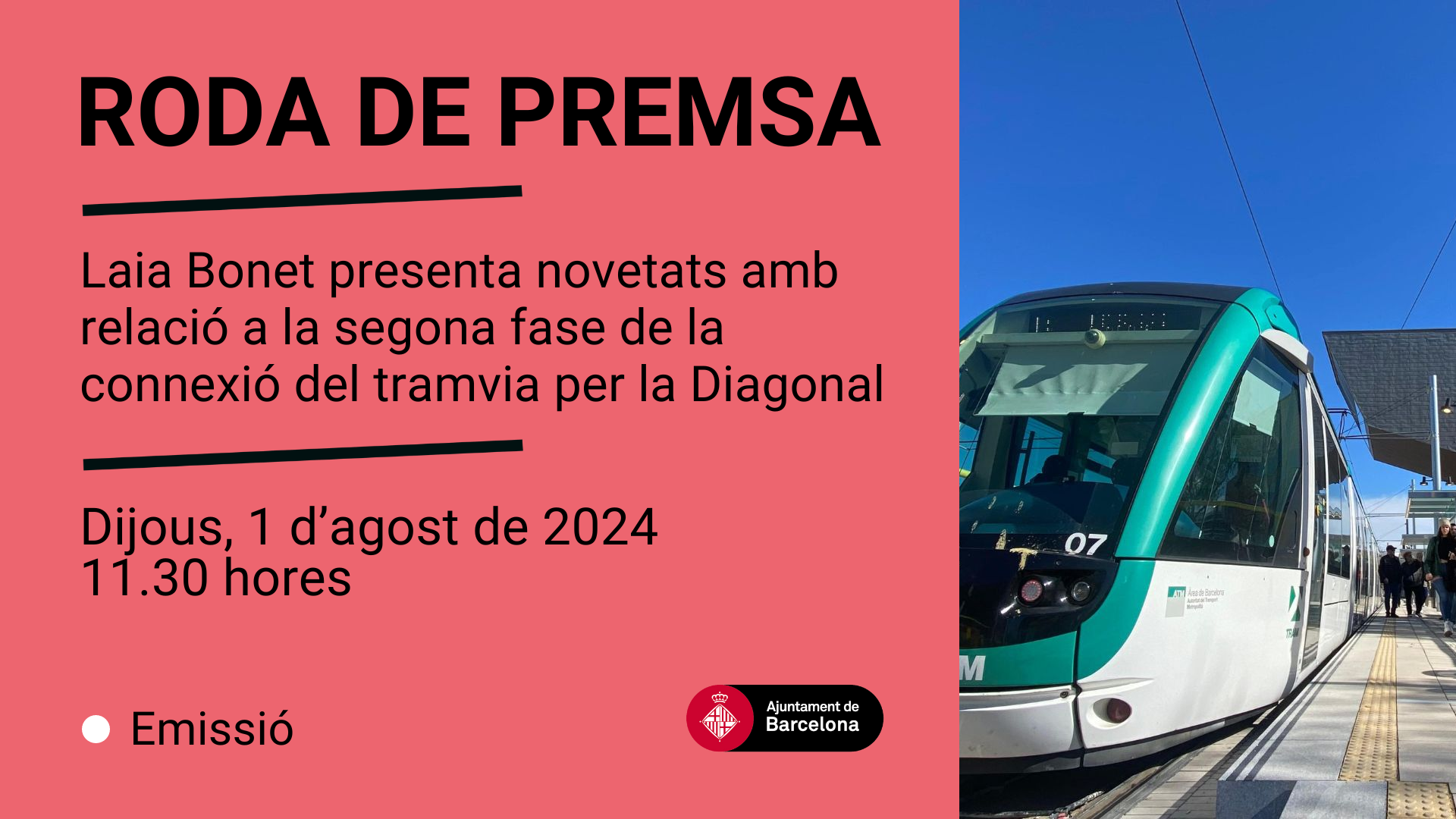 Aquesta nit s’iniciaran les primeres proves de circulació del tramvia per l’avinguda Diagonal, en el tram comprès entre la plaça de les Glòries i el passeig de Sant Joan. La ciutat de Barcelona fa avui un pas mes cap a la posada en marxa d’aquesta infraestructura de transport públic que se sumarà a l’oferta ja existent. Les proves d’integració hauran de permetre fer les comprovacions i els ajustos necessaris per poder posar en funcionament el servei a la tardor del 2024.