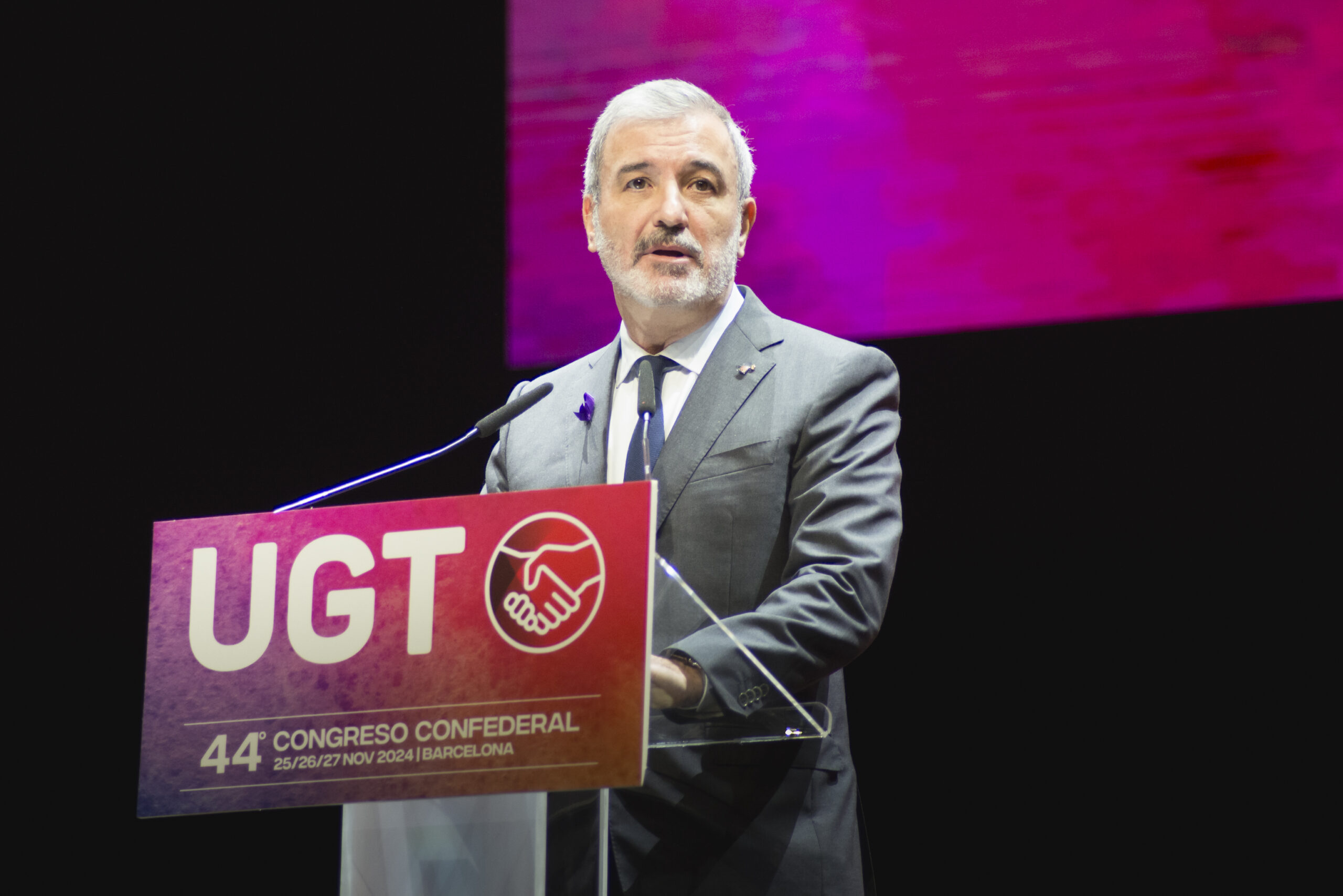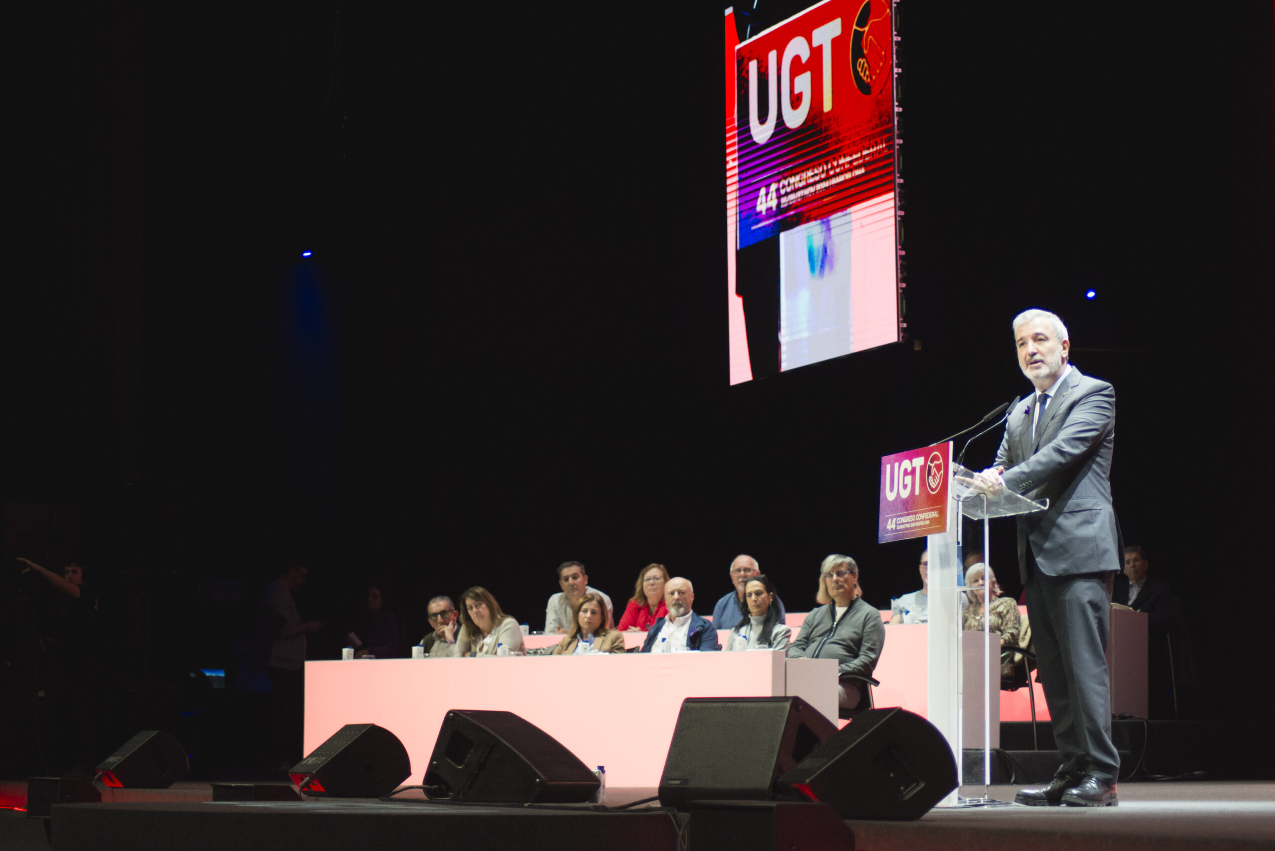 L’alcalde de Barcelona, Jaume Collboni, ha intervingut aquest dilluns en el 44è Congrés Condeferal de la UGT, que té lloc des d’avui i fins dimecres al Centre de Convencions Internacional de Barcelona (CCIB) sota el lema Més i millor sindicat.