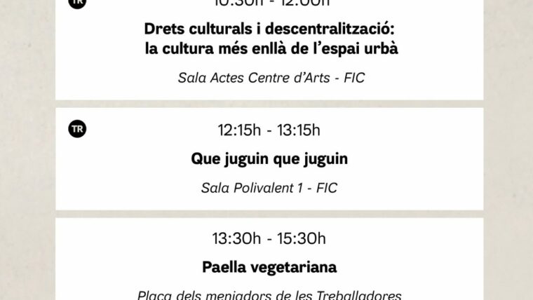 02/12/2025 - 13:35 h Arrenca el FAACCC, el festival de cultura comunitària que omplirà el recinte d’espectacles i creativitatEl festival FAACCC: gratuït i obert a tothom, activitats participatives i creacions col·lectives per impulsar la cultura comunitària a la ciutat.