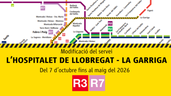 06/10/2025 - 17:34 h Afectacions per les obres de desdoblament del tram Parets - La Garriga de rodalies Renfe des del 7 d'octubreAmb motiu de les obres d'infraestructura que Adif executa a Montcada Bifurcació i de desdoblament de via entre Parets del Vallès i La Garriga, s’interromp la circulació de trens entre L'hospitalet de Llobregat i La Garriga.