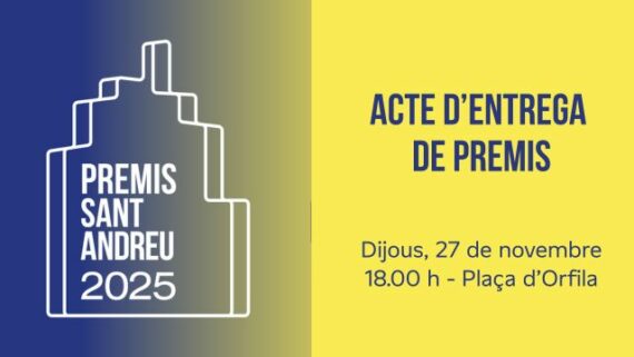 11/11/2025 - 13:56 h Ayuntamiento El jueves 27 de noviembre tendrá lugar la entrega de los Premios Sant Andreu 2025El acto de entrega de premios será el jueves 27 de noviembre a las 18.00 horas en la plaza de Orfila.