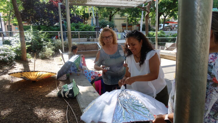 La plaza de Trinitat Vella se llena de color y creatividad gracias al espacio de costura libre