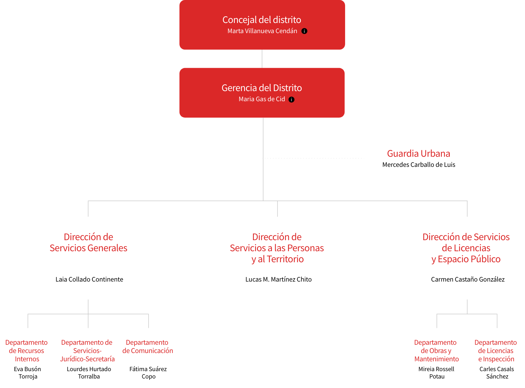 La estructuración en distritos del Ayuntamiento de Barcelona ha acercado la gestión municipal cotidiana a todos los rincones de la ciudad. Cada uno de los diez distritos dispone de una estructura ejecutiva diferenciada de la de los servicios centrales y disfruta de amplia autonomía.