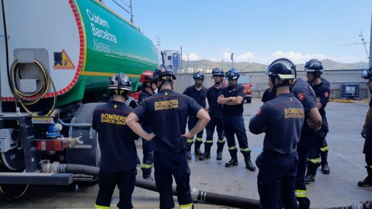 Con el fin de estar preparados para intervenir en situaciones de emergencia en las que no hay presión de agua o cuando es muy baja, miembros del cuerpo organizan varias sesiones en parques de Bomberos en coordinación con Cuidem Barcelona.