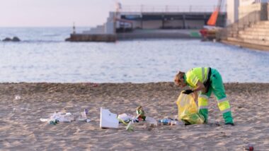 Brigada de neteja dels carrers del barri per recollir les brosses dels petards de Sant Joan.