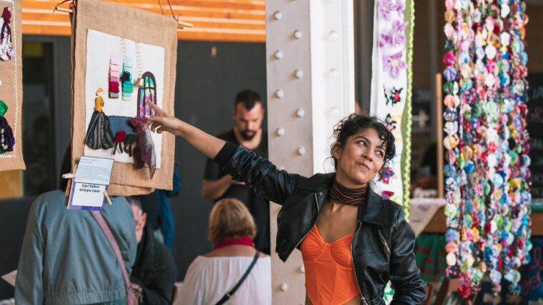 Durant el festival gent de totes les edats, orígens i nivells d’expertesa vam poder gaudir de moltes activitats relacionades amb la costura, com ara tallers a l’aire lliure, exposicions de peces fetes per dones dels grups de costura comunitària, taules rodones i un espai d’intercanvi d’experiències. D’una camisa en podies fer un coixí, o d’un mitjó en feies un ninot, es podien aprendre tècniques de costura menys comunes, com ara la cianotípia o el brodat boro sashiko… Mentrestant, també s’estaven emetent en directe diferents programes de ràdios que formen part de la Xarxa del Ràdio Associa’t, coordinat per l’Espai Torre Jussana, amb el suport tècnic de la Xarxa de Ràdios Comunitàries de Barcelona.