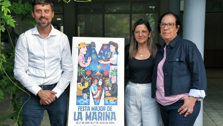 El jurat del Concurs de cartells de la Festa Major de la Marina ha triat el disseny de Juan Diego Ingelmo. Es tracta d’una il·lustració digital, realitzada amb programes vectorials i de retoc fotogràfic, que representa els diferents elements de la Festa Major emmarcats en una M: el correfoc dels Diables de Port, els gegants Magí i Quimeta, la música i el ball, els coets i els guarniments… Tot això emmarcat en el paisatge de la Marina, amb colors molt vius i cridaners, mirant de visibilitzar la veritable essència de la festa: les persones que la fan possible.