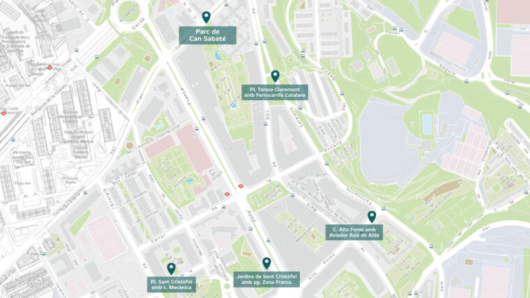 - Plaça de Teresa Claramunt (c. Ferrocarrils Catalans / c. Mare de Déu de Port)