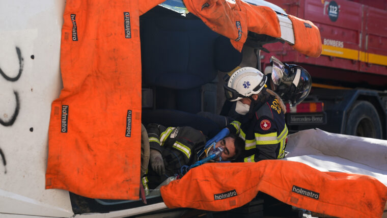A continuación se lleva a cabo la intervención y se habla en todo momento con la víctima para tranquilizarla y explicarle las actuaciones que se realizarán para tratar de minimizar las lesiones, si hay, y no agravarlas. Con las herramientas necesarias para acceder al vehículo y en coordinación con el profesional sanitario, se procede a la extracción de la persona para liberarla.
